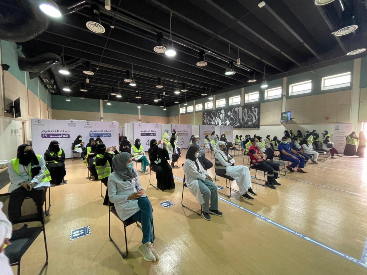 وامتدت أيضًا لتشمل أسرهم وعمالتهم المنزلية ولمقدمي الخدمات للكلية من عمالة في مجال الصيانة والنظافة، وقد تم بحمد الله الانتهاء من تطعيم 440 مستفيدًا ومستفيدة خلال ستة ساعات ابتداءً من الساعة التاسعة صباحاً إلى الساعة الثالثة مساءً بآلية منظمة وسلسه مطبقين بها جميع معايير مكافحة العدوى والإجراءات الاحترازية.