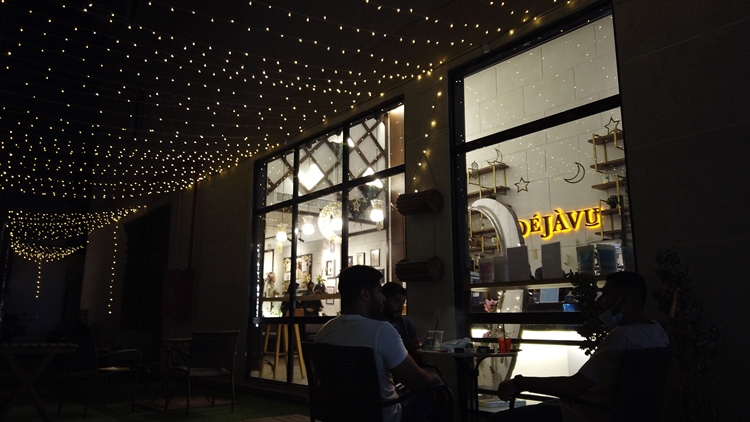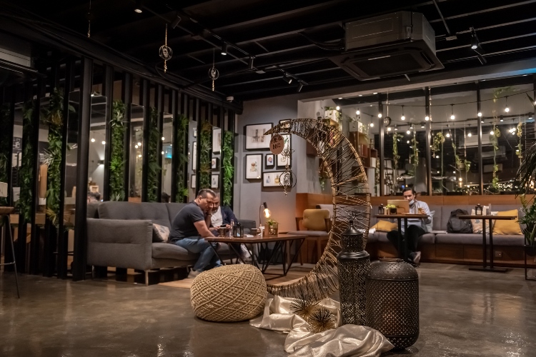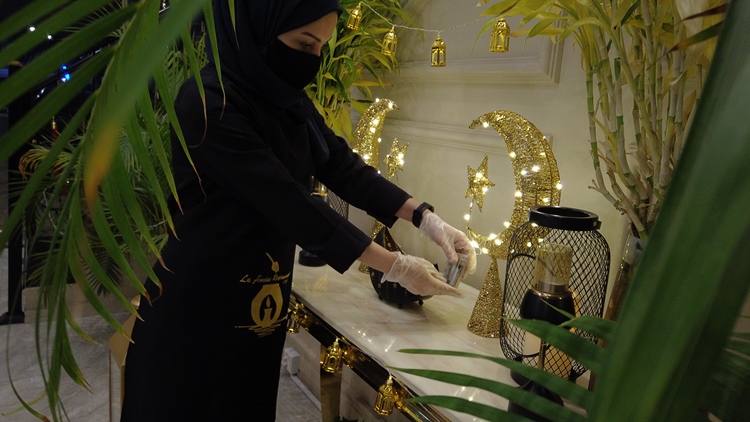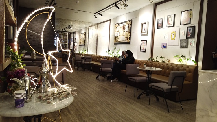 واختارت بعض المقاهي مشاركة روادها بتوفير الأجواء الرمضانية بتعليق الإنارة الصفراء، ومجسمات اتخذت شكل الهلال والنجوم.