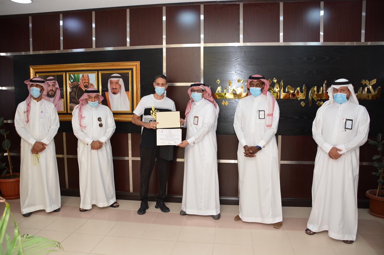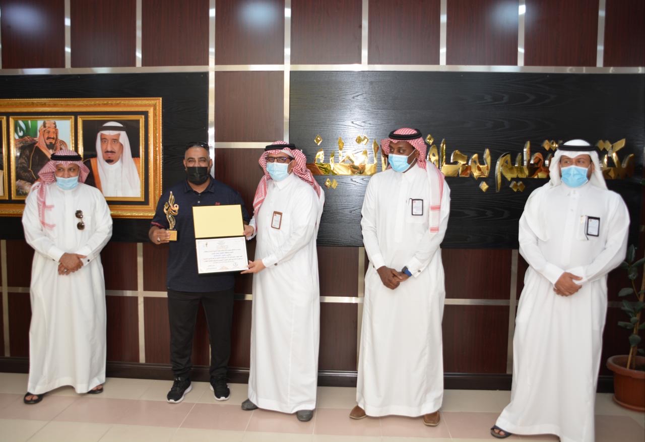 وفي نهاية الحفل قدَّم القرني دروع التميز وشهادات التكريم للمعلمين، وهم: