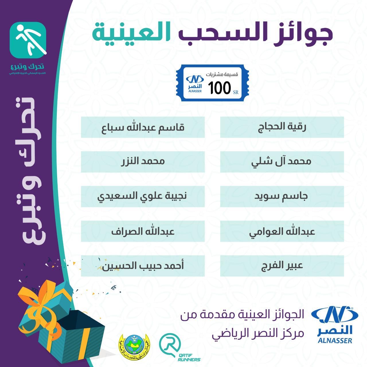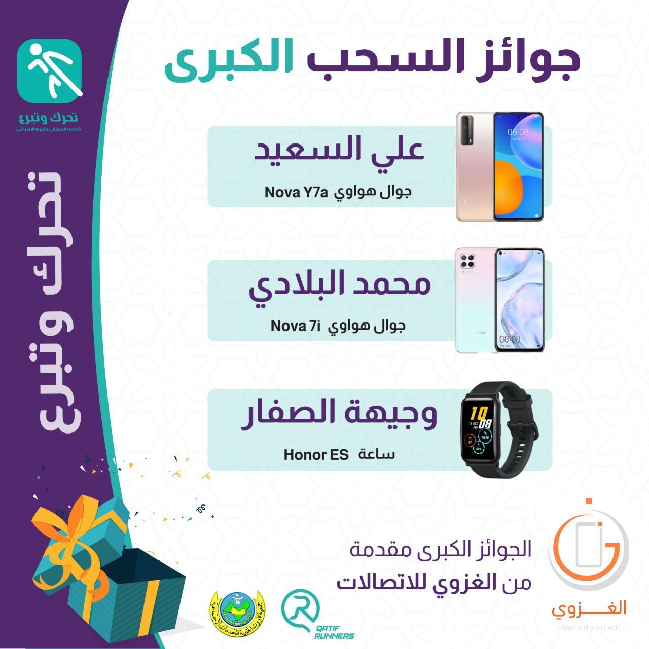 واضاف في ختام الفعالية وزعت مجموعة جوائز قيمة من الرعاة الكرام للفائزين من الرجال والسيدات والاطفال الذين قطعوا مسافات اطول، وتعددت الجوائز بين اجهزة جوال وساعات ذكية وكوبونات مشتريات وجوائز عينية، مضافا لشهادات الشكر الالكترونية التي قدمت لكافة المشاركين والمشاركات في ذات الفعالية.