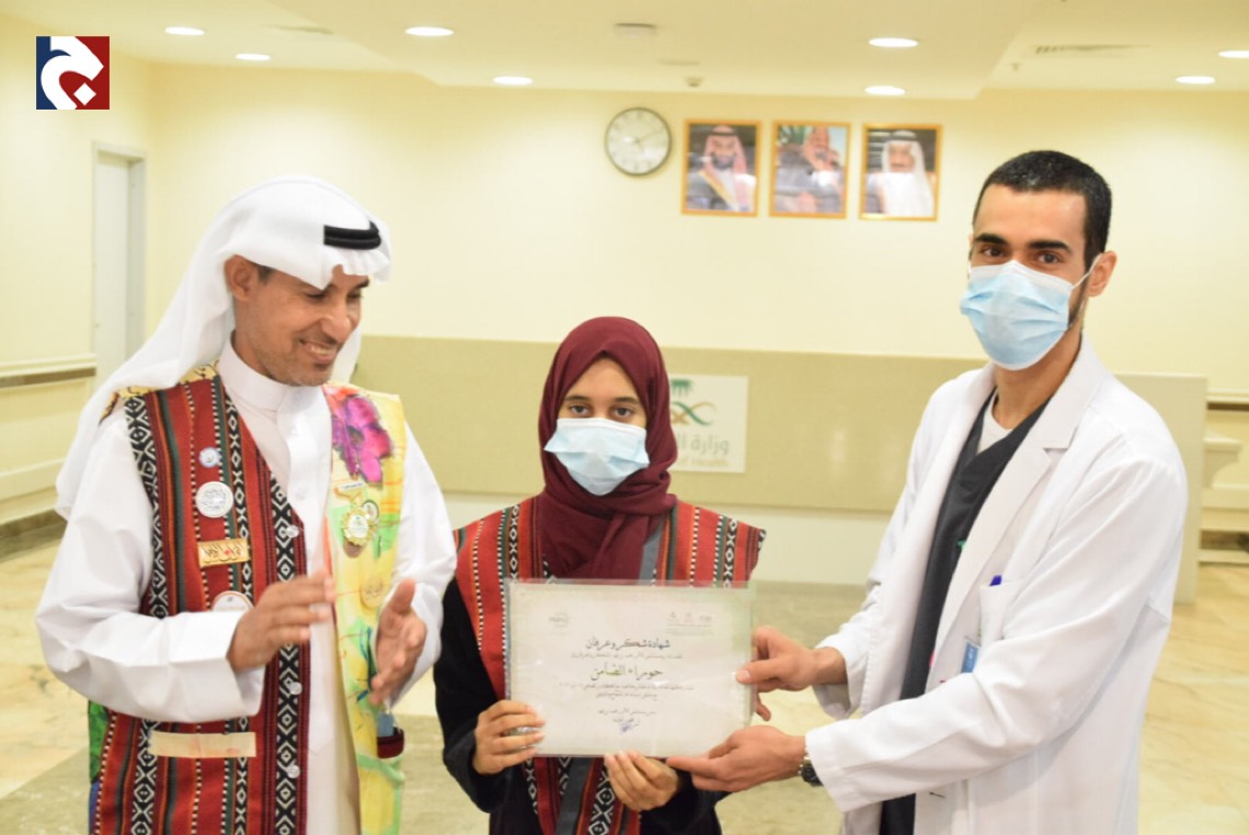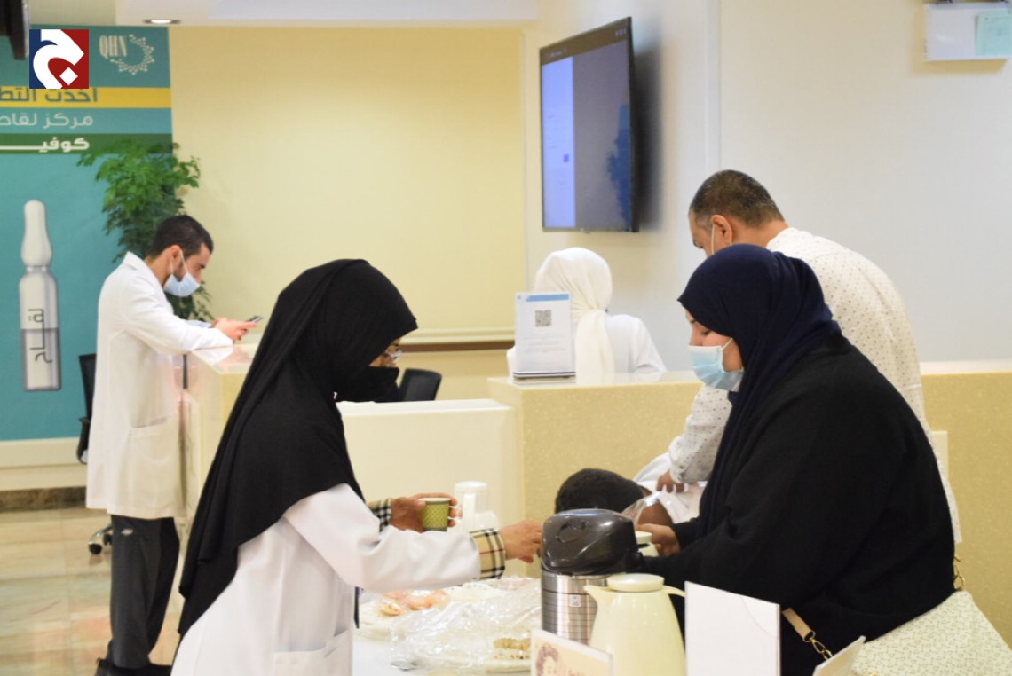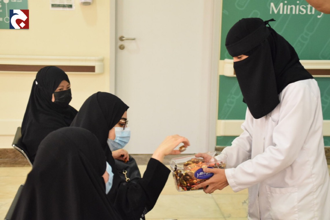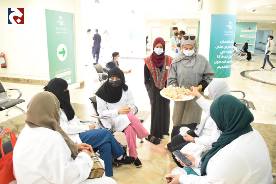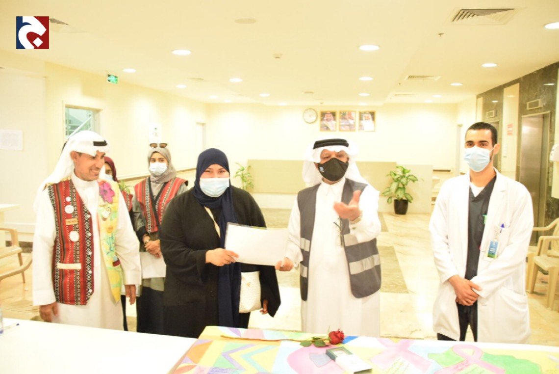نظم مستشفى الأمير محمد بن فهد لأمراض الدم والوراثة بالقطيف مبادرة تحت عنوان ”لإسعادهم“ بهدف مشاركة الكوادر الطبية وأبطال الصحة فرحة العيد.