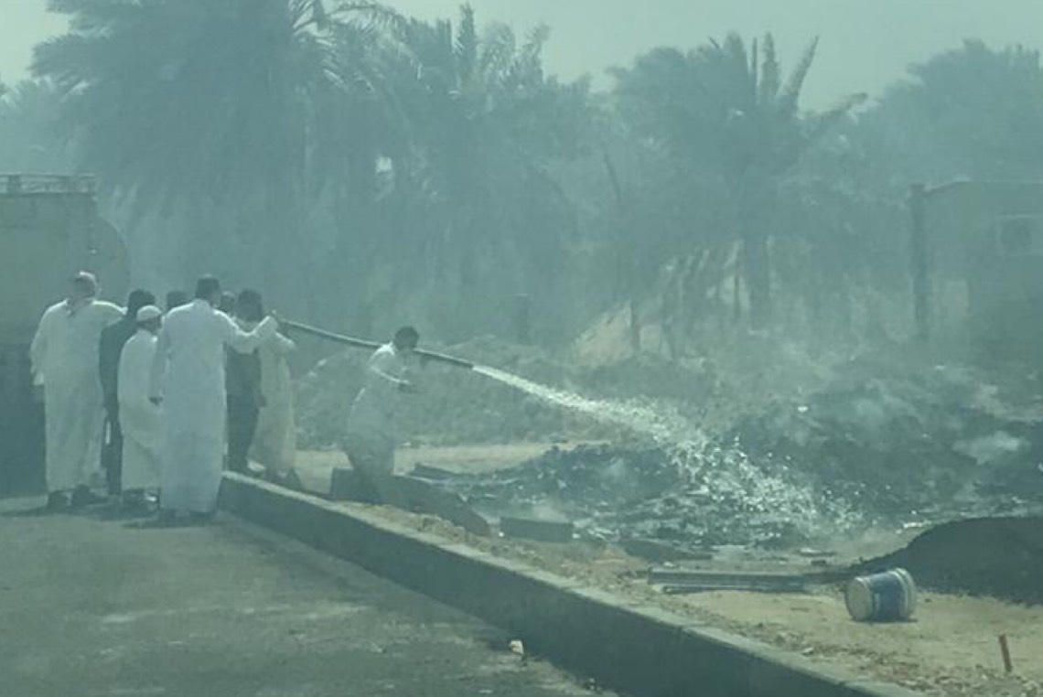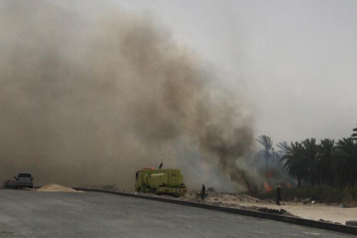 باشر الدفاع المدني بالقطيف حريقا ضخما اندلع في مزارع ”العليوات“ الواقعة على الطريق الرابط بين بلدة عنك والقطيف.