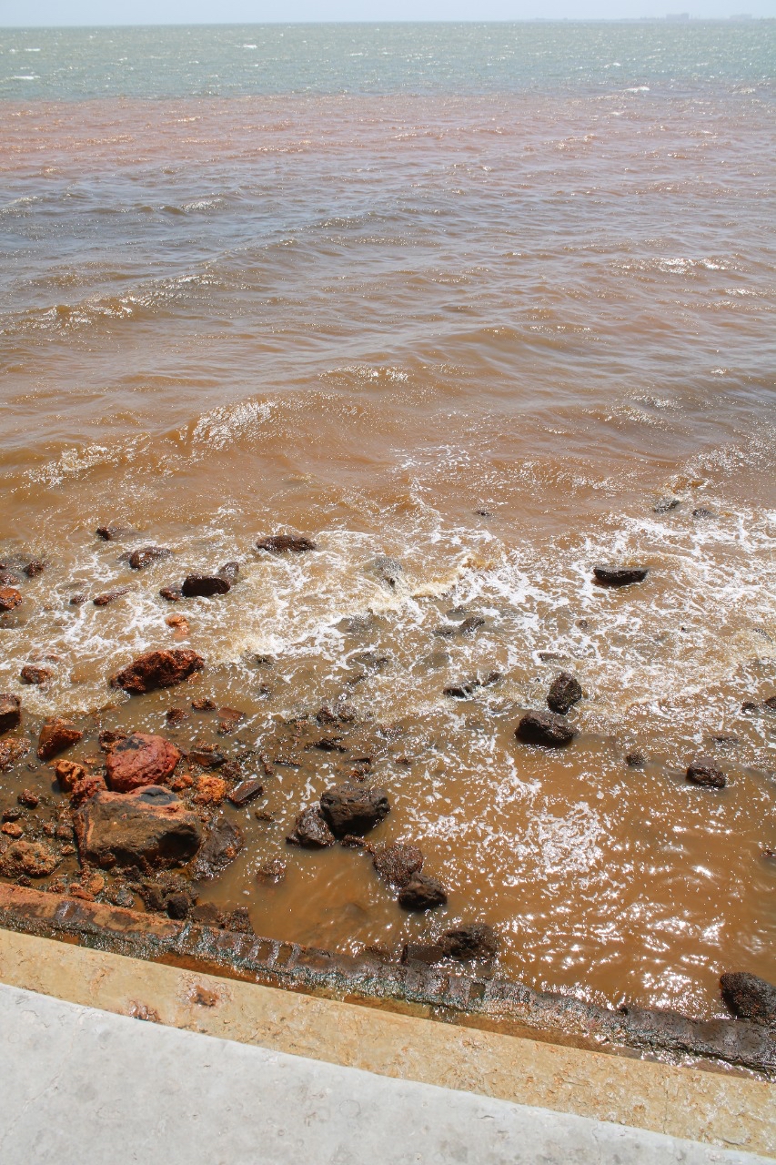فوجئ مرتادو كورنيش الكوثر بسيهات صباح اليوم ”السبت“ بقعة برتقالية تمتد على مساحة واسعة من الكورنيش في مياه البحر.