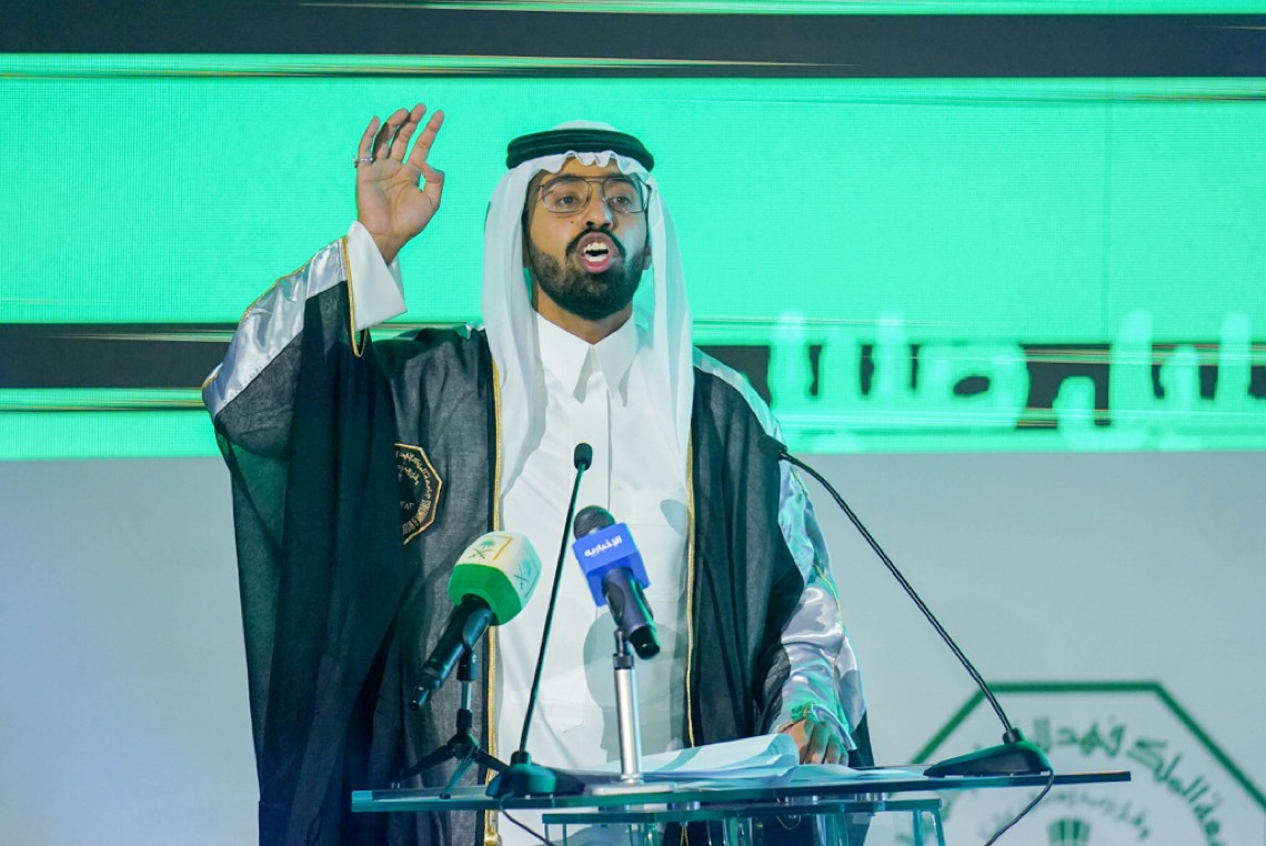 وقال إن رسمة مسيرتنا الجامعية قد اكتملت، وكنتم - الخريجين - محاور جمالها، حُق لكم الفخر فأنتم خريجو جامعة الملك فهد للبترول والمعادن.