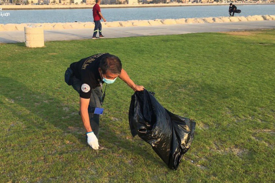 وبدأ أفراد الجالية بمشاركة 200 متطوعا - من خلال صور متداولة على حساب بلدية محافظة القطيف في مواقع التواصل الاجتماعي - وهم يعملون رجالاً ونساءً بشكل جماعي ويحملون أكياس النفايات والمكانس وينظفون المسطحات الخضراء والأرصفة على الكورنيش.