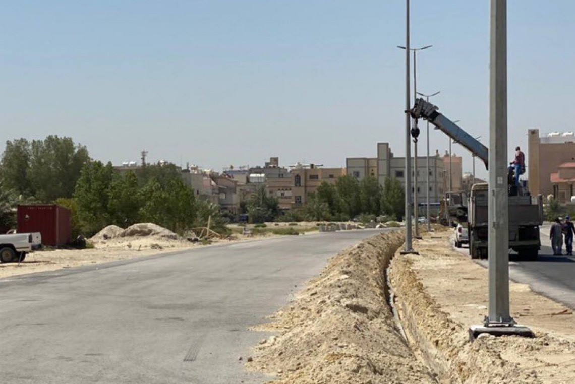 بدأت بلدية محافظة القطيف، تركيب أعمدة إنارة بمخطط الدكاترة في العوامية.