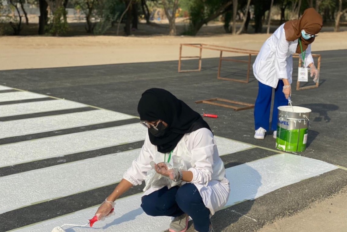 دشن فريق «Go» التطوُعي مُبادرة لعمل خطوط مُشاة في ثلاثة مواقع للمُشاة، وذلك في عدد من المواقع، وهي ممشى المسرح الدائم، وممشى مكاتب المشروع، وممشى الألعاب.