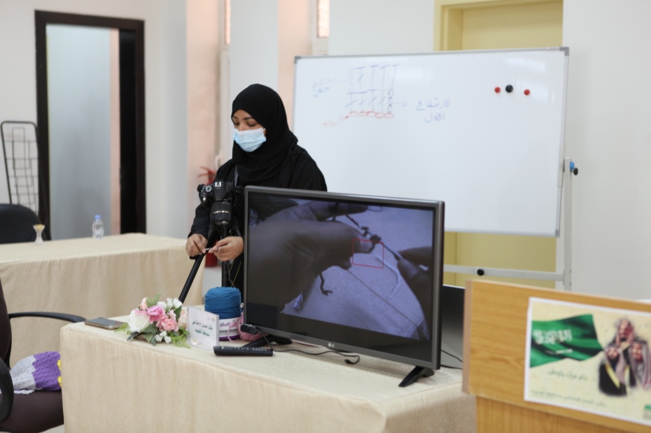 وأكدت ضرورة وجود مهارة السحب أثناء عمل الغرز بحيث لا تخرج إحدى الغرز عن الأخرى حرصا على اتقان العمل مع الحرص على نظافة اليدين وعدم ترك الإبر في متناول الأطفال وضرورة إتمام العمل والتخطيط له كأحد التحذيرات الهامة التي تطرقت اليها المدربة.