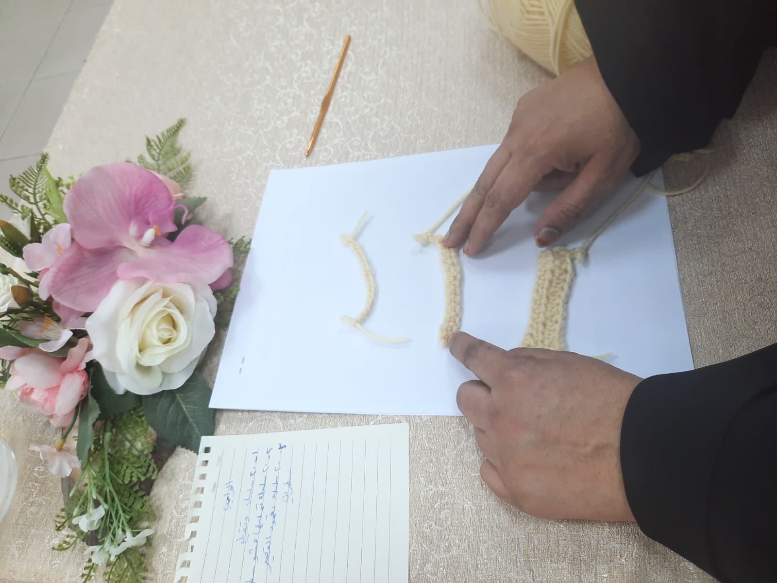 وتم تعريف المتدربات على أنواع الإبر والخيوط المستخدمة في الكروشيه كالقطن، الصوف الحرير، وأشارت المدربة إلى الإستخدامات المتنوعة لهذ الفن كصناعة المفارش، الأغطية، الملابس، الدمى، إكسسوارات المنزل، وغيرها.