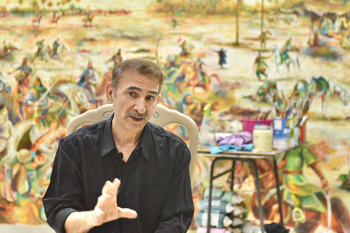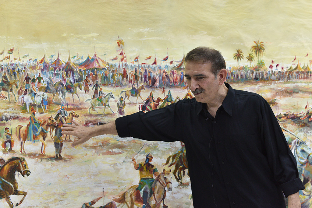 - يقول إنه استلهم اللوحة من وصايا والدته القارئة الحسينية.