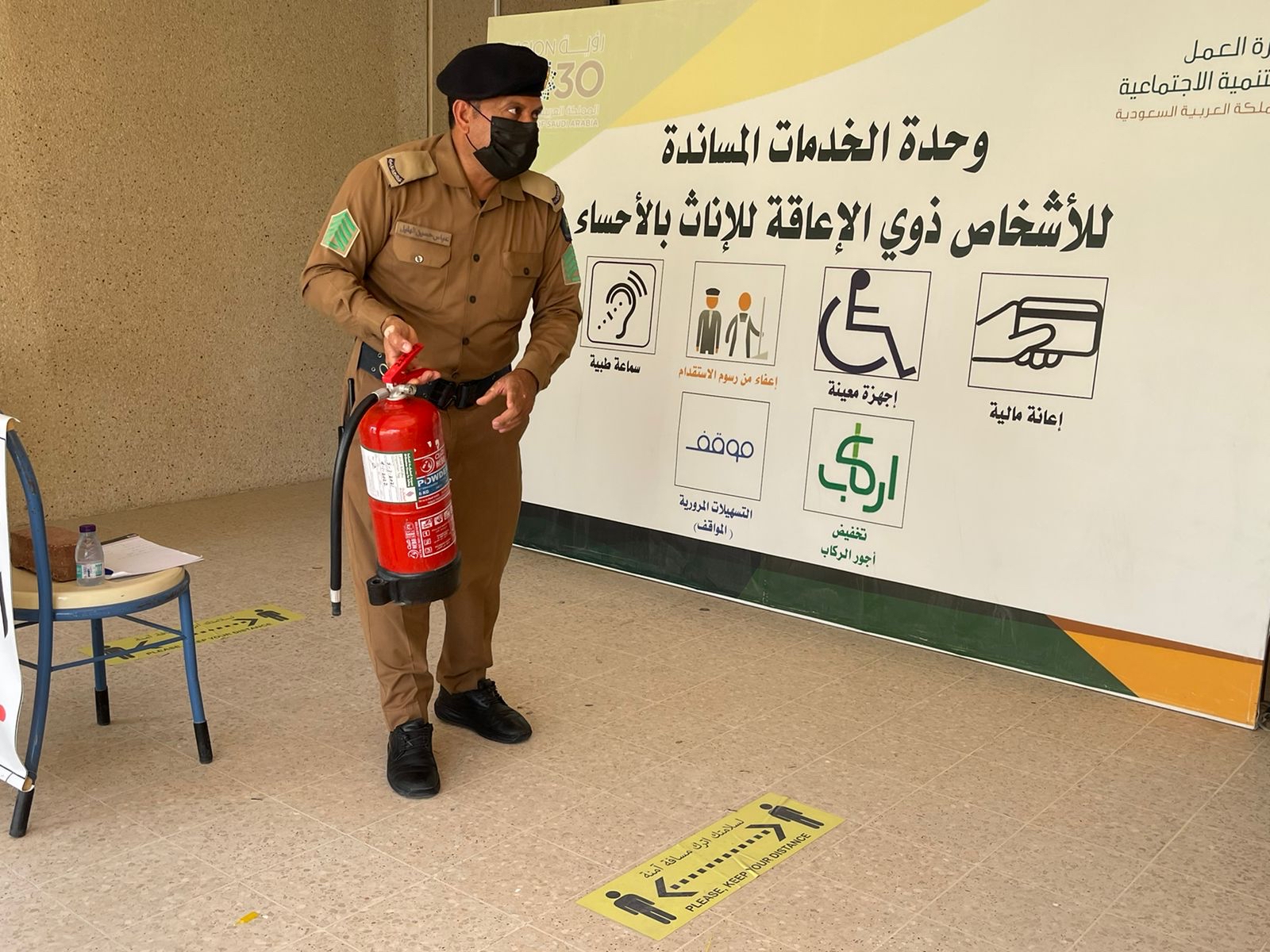 نفذت وحدة الخدمات المساندة للأشخاص ذوي الإعاقة للإناث بالأحساء، اليوم، خطة إخلاء وهمية.