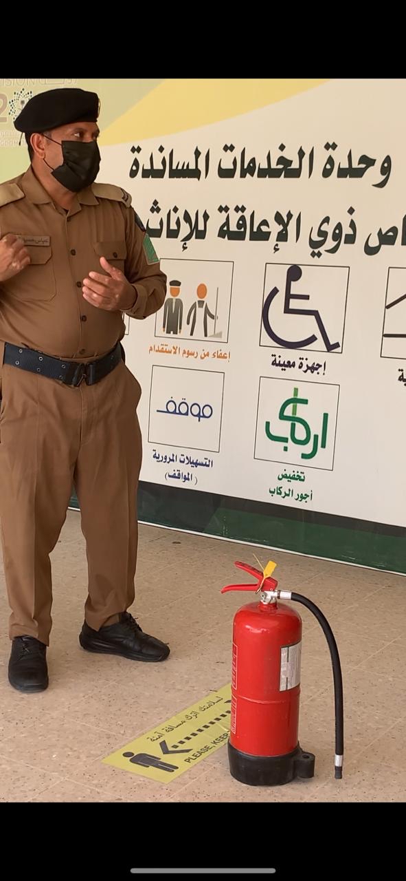 و تدرب منسوبي ومنسوبات الوحدة على طريقة استخدام طفاية الحريق والخطوات اللآزمة لإستخدامها بفاعلية وأمان.
