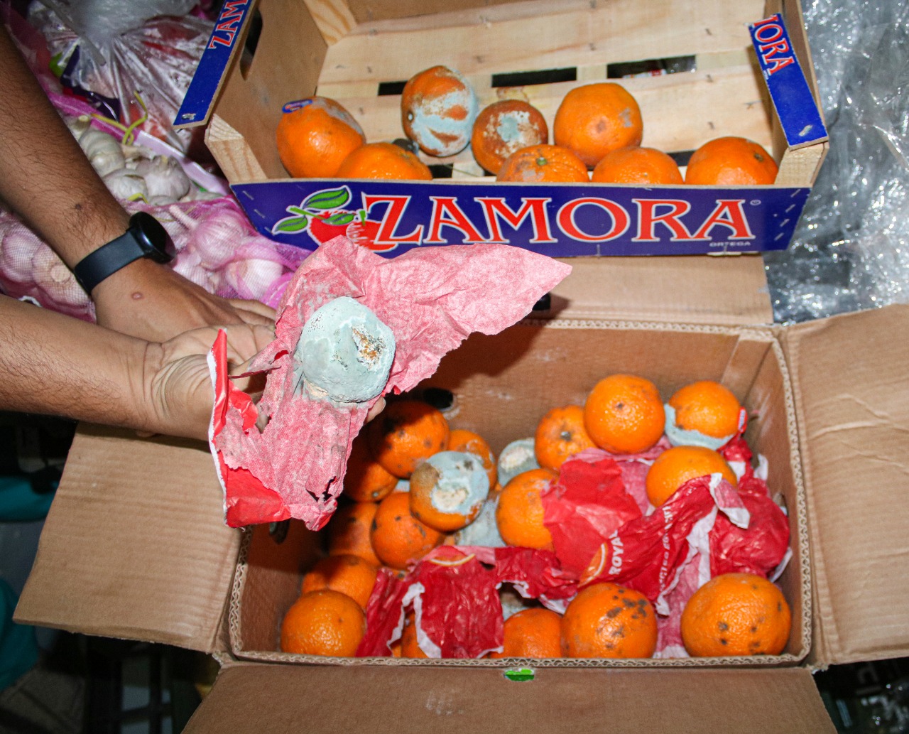 شاهد .. إتلاف 76 طن فاكهة وخضار فاسد داخل مستودع