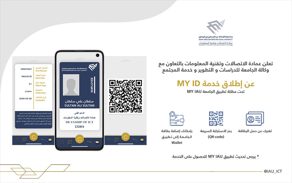 إطلاق خدمة ”بطاقتي الرقمية“ بجامعة الإمام عبد الرحمن