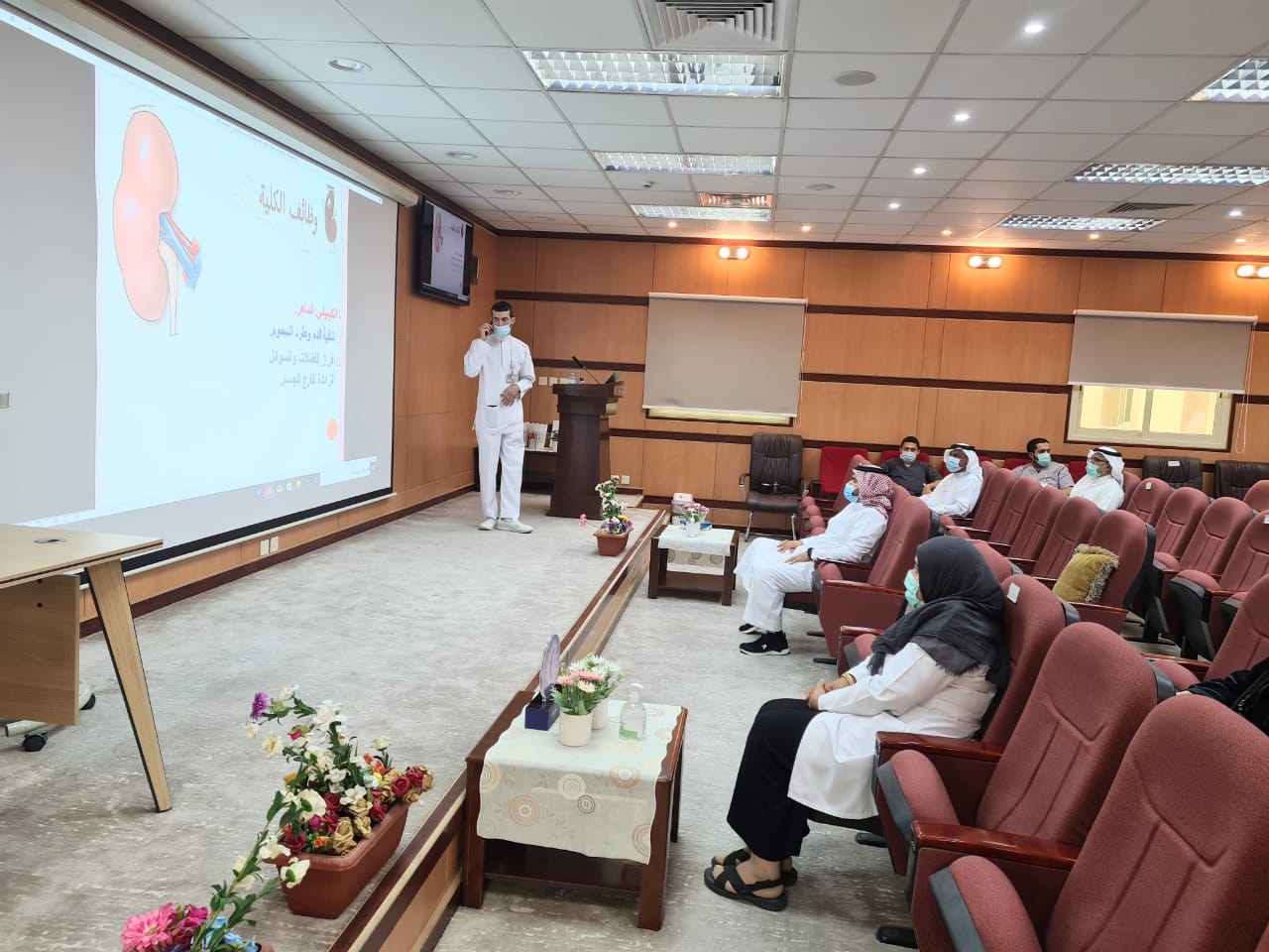 شملت المحاضرة عدة محاور، أهمها وظائف الكلى، والعوامل الخطرة، ومسببات الفشل الكلوي، بالإضافة الى طرق العلاج.