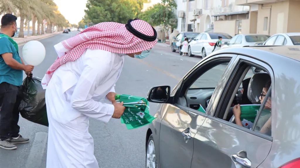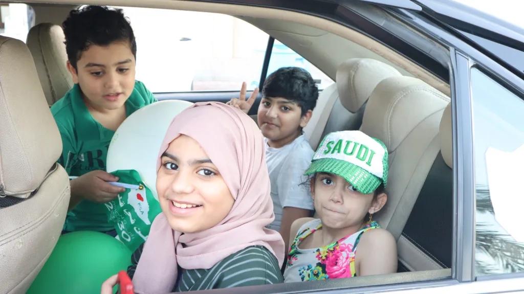 وشهدت الفعالية حضورً الأهالي مع أطفالهم الذين حرصوا على المشاركة في حفل هذا الوطن الغالي وهم بداخل سياراتهم وقد ارتدوا الأوشحة الخضراء ورفعوا الأعلام التي تُعبّر عن حب الوطن وتزيد الشعور بالحماس والوطنية.