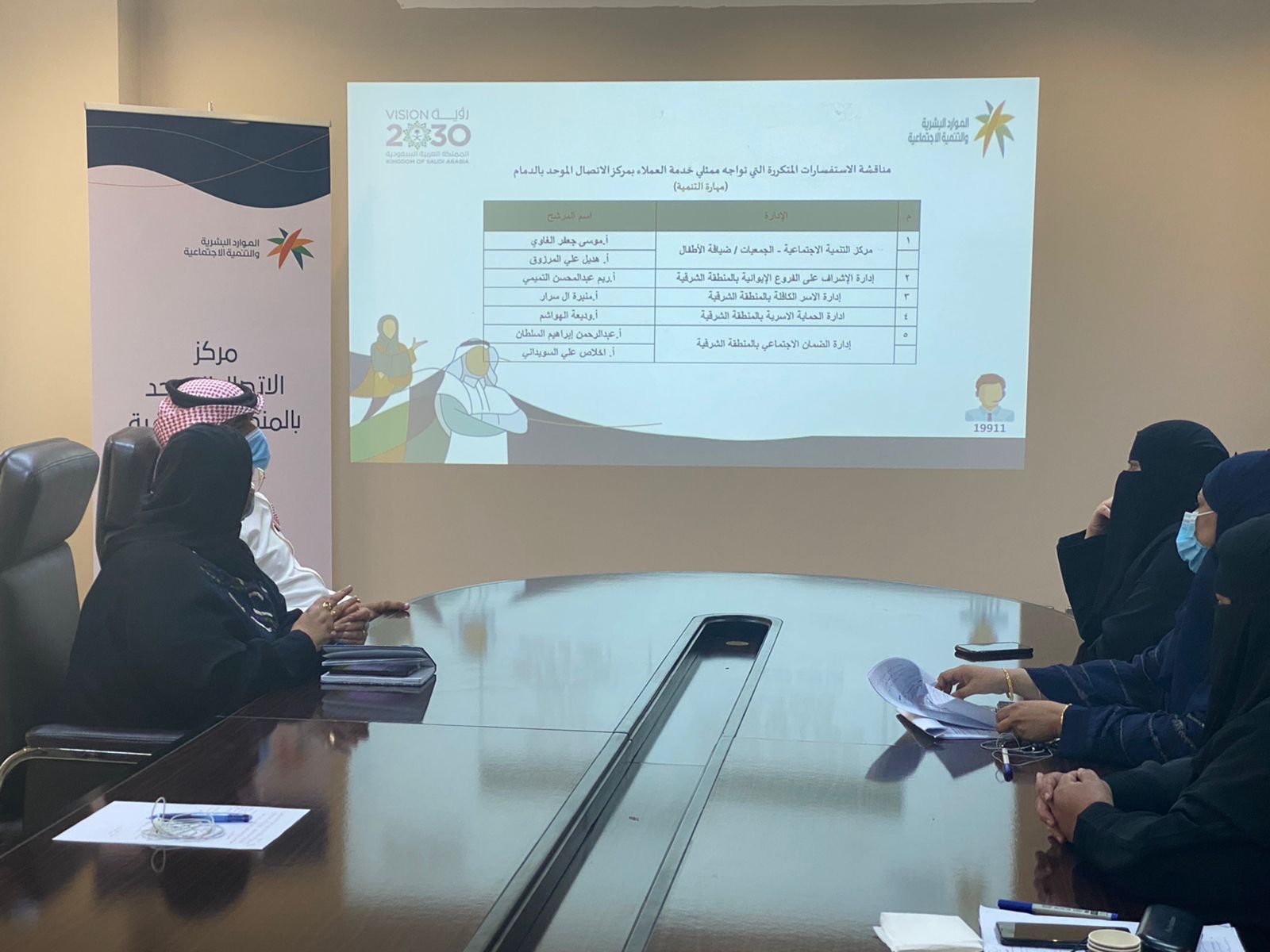 وأدار اللقاء مشرفي وحدة التواصل وأخصائية الجودة وتضمن مناقشة الاستفسارات التي واجهت ممثلي خدمة العملاء وأهم المستجدات في الأنظمة وبعض آليات تقديم الخدمات.