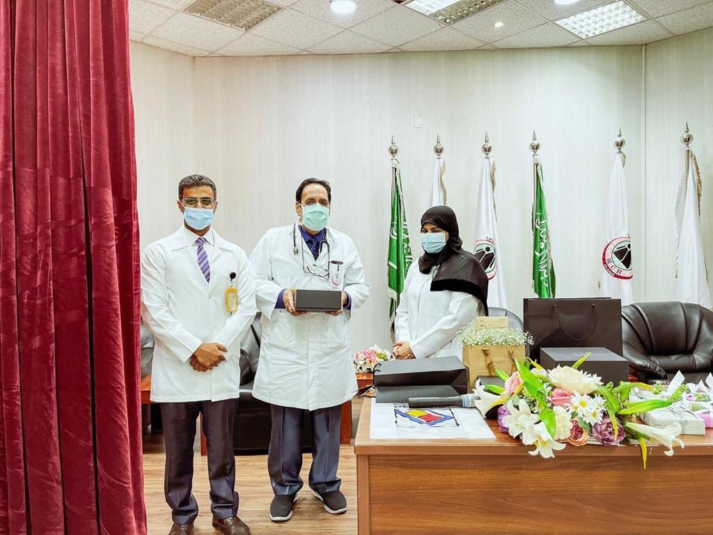 جاء ذلك بتوجيه من مدير المستشفى ماجد الحميضان، نظرًا للعطاء العلمي والإكلينيكي والإداري والإنساني الذي قدمه هؤلاء خلال مسيرة حياتهم العملية، فتكريم العاملين المخلصين من سمات الإدارة الناجحة.