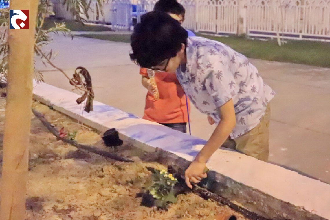 وساهم الأطفال في غرس الشتلات في التربة في حديقة ”أكشن بارك“، ويؤدي هذا العمل إلى تعزيز واحترام البيئة في وجدان الطفل؛ لشعوره بقيمة ما يفعله من زرع الجمال في الحديقة، ما ينمي روح الانتماء لفكرة الزرع، عوضًا عن اقتلاع الزهور أو الشجيرات الصغيرة.