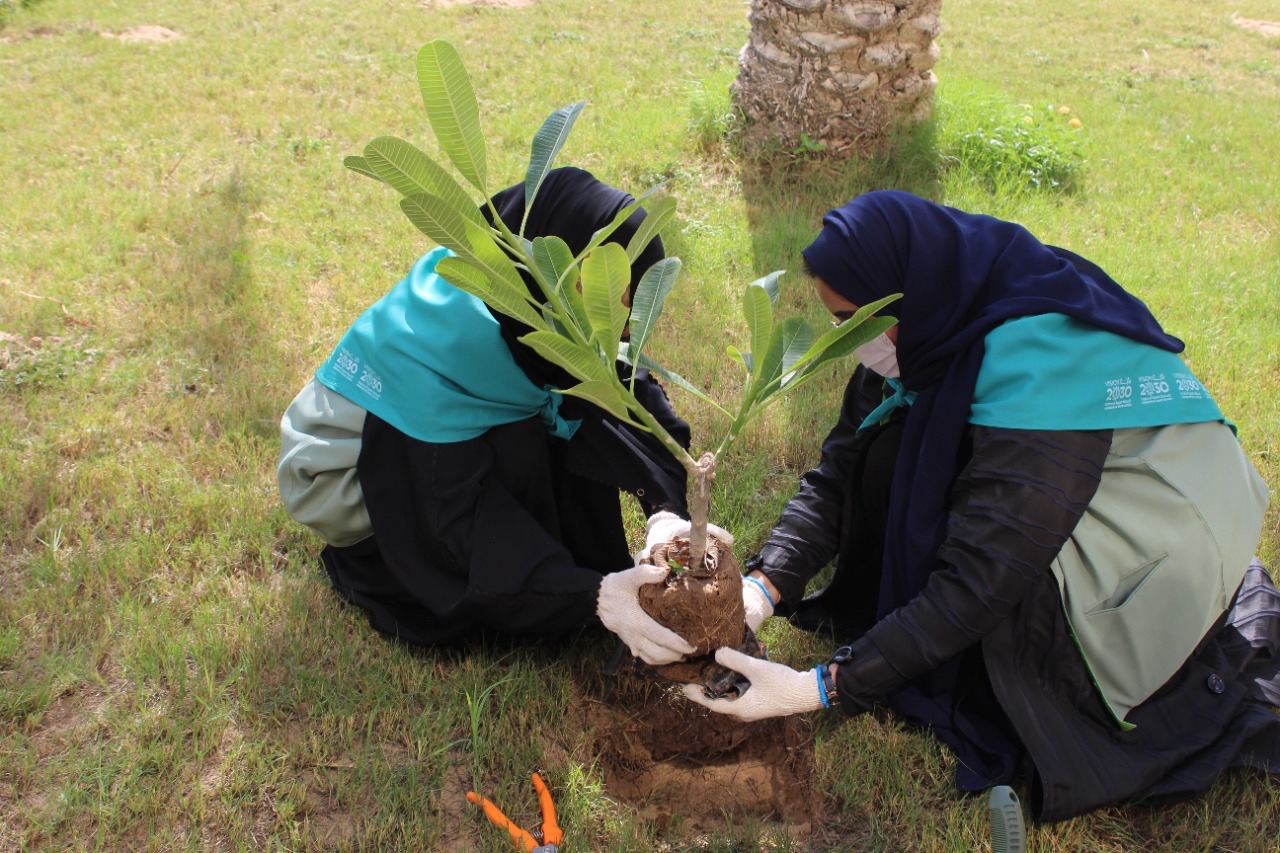 بالصور.. غرس 200 شتلة في ”تقنية البنات“ بالأحساء