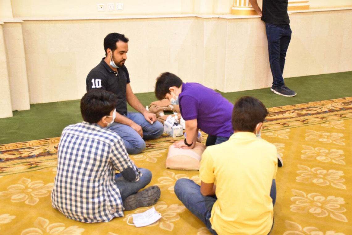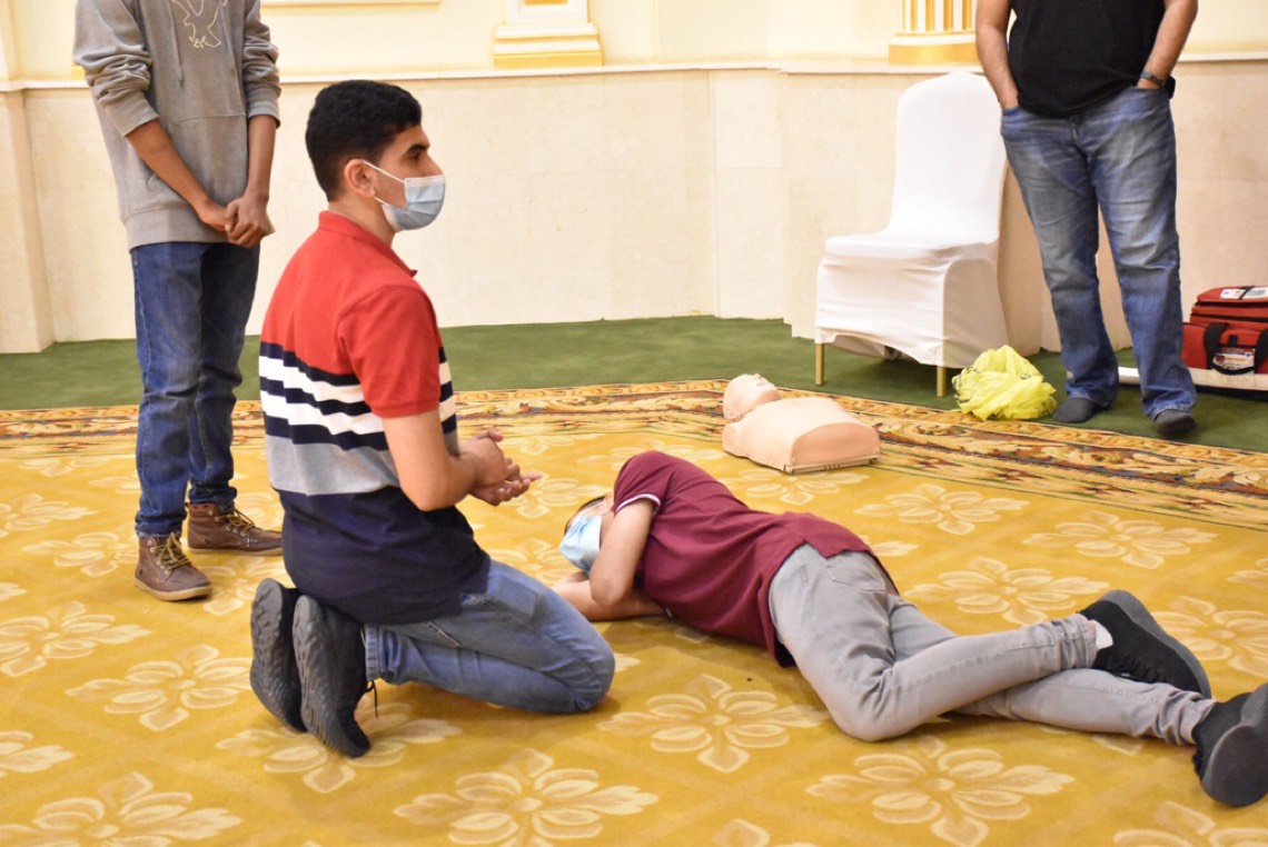 وتضمنت الورشة ثلاث محطات، كانت المحطة الأولى منها تُعنى بكيفية التعامل مع حالات الطوارئ للبالغين، وكيفية الإنعاش القلبي الرئوي عند غياب الوعي وعدم استجابة المُصاب.