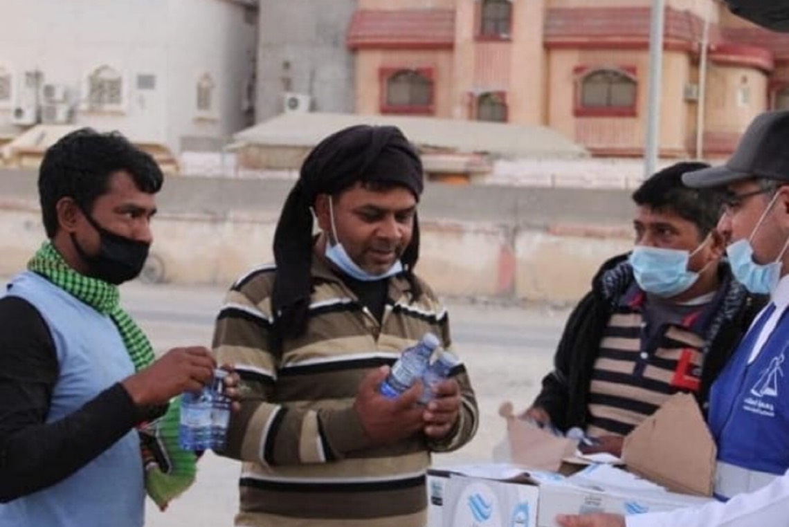 بادر متطوعو جمعية ”العطاء“ بتوزيع كراتين الماء، في أماكن تجمع العمال، والمساجد والمرافق العامة؛ طلباً للأجر والثواب ضمن المبادرة التي أطلقتها الجمعية، تحت مسمى مشروع ”آفاق العطاء“.
