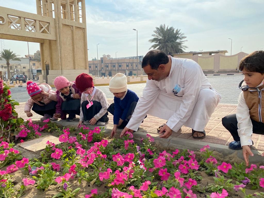 بالصور.. 300 طالب يزرعون 16 ألف زهرة موسمية بالقطيف
