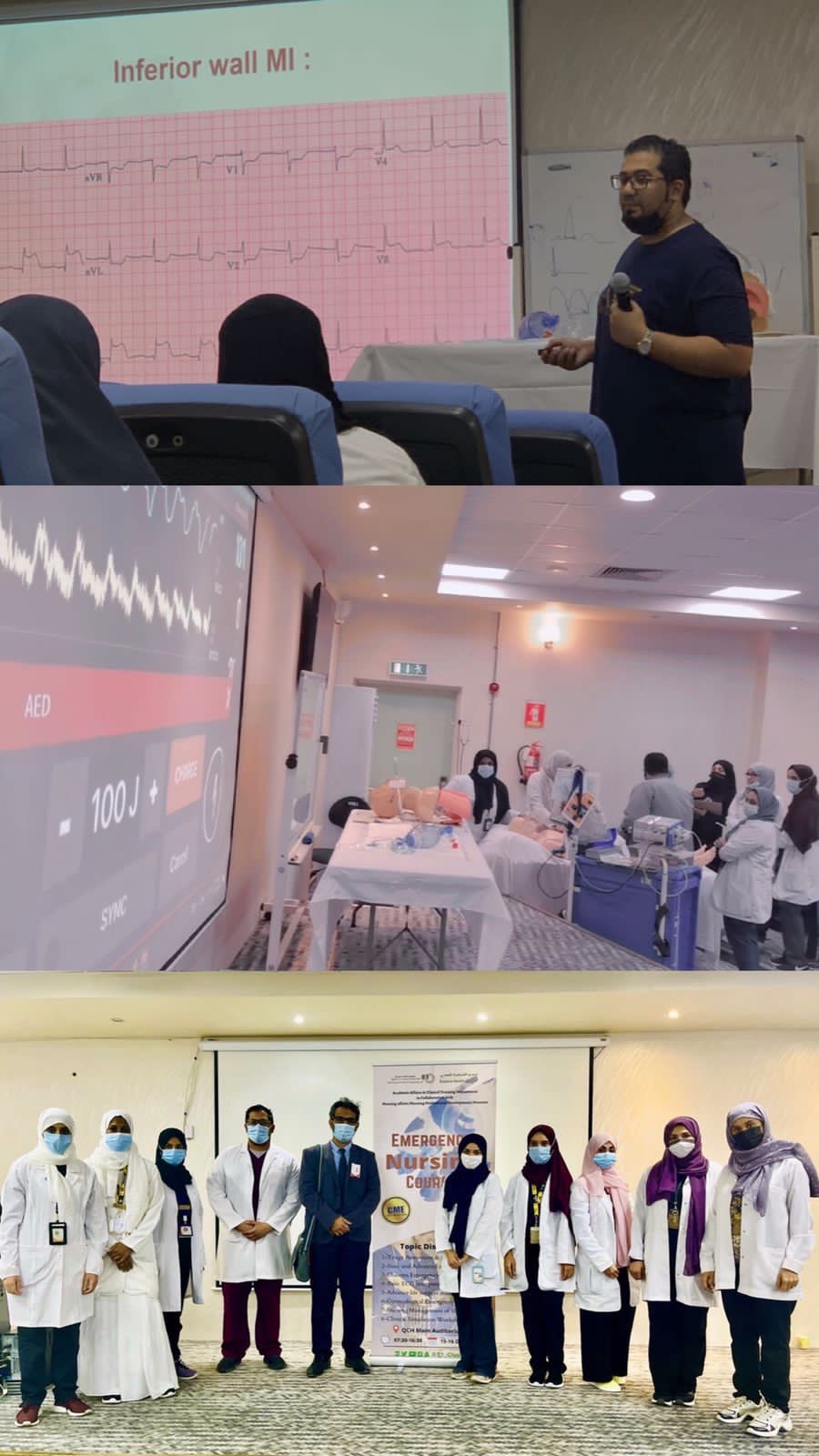 أقامت إدارة شؤون التمريض بشبكة القطيف الصحية، ممثلة في قسم التطوير المهني للتمريض دورة تدريبية بعنوان ”Emergency Nursing Course & Workshop“.