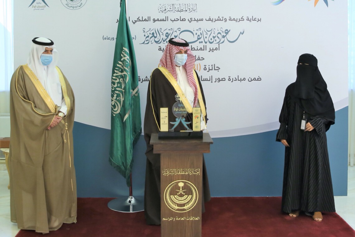 وكرم أمير الشرقية بديوان الإمارة اليوم الإثنين الفائزين بجائزة ”الإنسان أولاً“ للعمل الإنساني بالمنطقة الشرقية 2021 التي انطلقت بالتزامن مع اليوم العالمي للعمل الإنساني وينظمها فرع وزارة الموارد البشرية والتنمية الاجتماعية بالمنطقة.