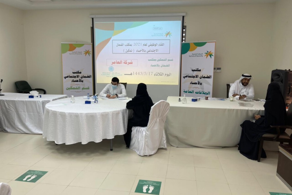 نظم قسم التمكين التابع لمكتب الضمان الاجتماعي بالأحساءملتقى توظيف بالتعاون وذلك في مقر المكتب لمستفيدين ومستفيدات الضمان الاجتماعي وأبنائهم.
