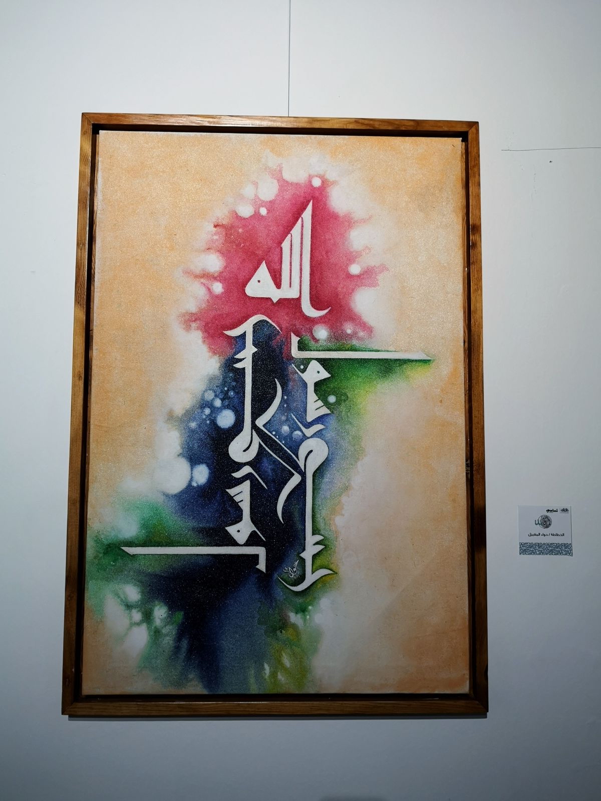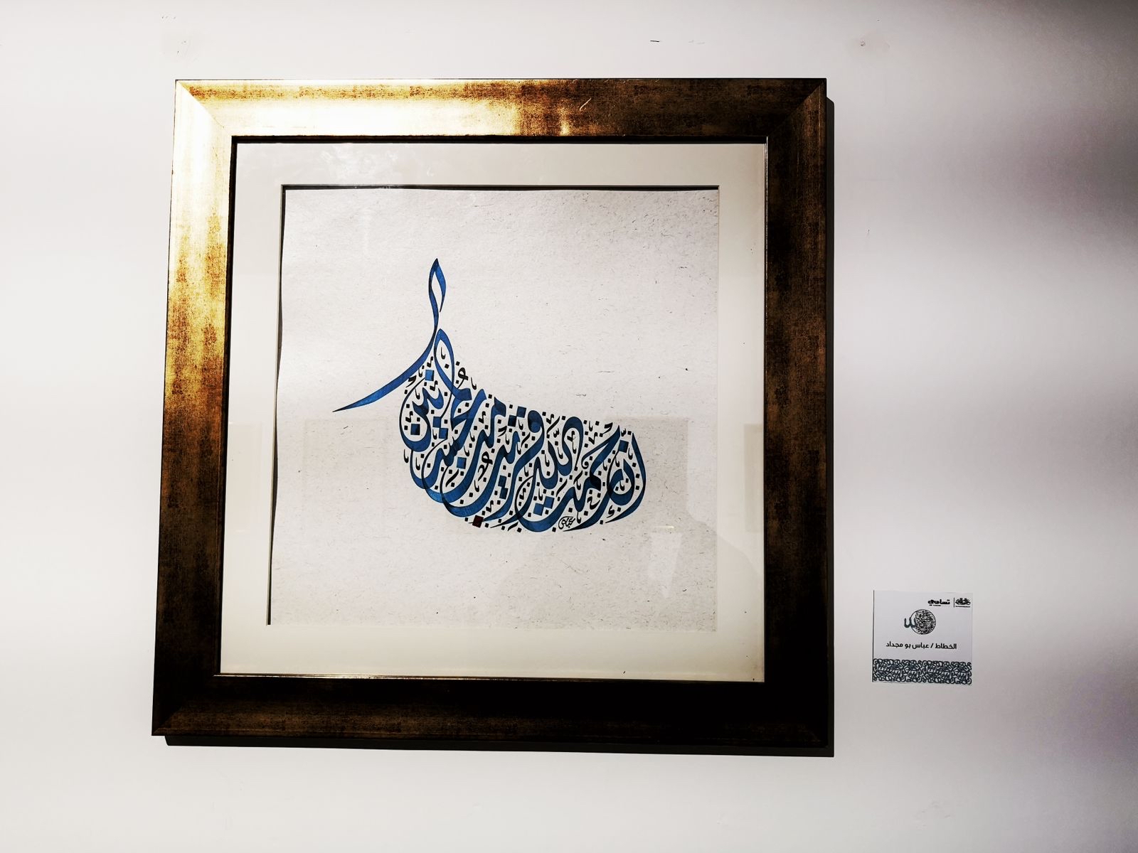 فيما قدم الخطاط عبد الله الصالح لوحة ”الله الصمد“ بالخط الكوفي الفاطمي بتصميم عمودي مذهب.
