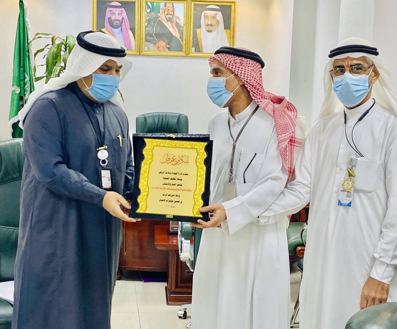كرم رئيس التشغيل بشبكة القطيف الصحية، د. رياض الموسى، أبطال مركز الاتصال بمستشفى القطيف المركزي نظير تميزهم في الأداء خلال الشهور الماضية.