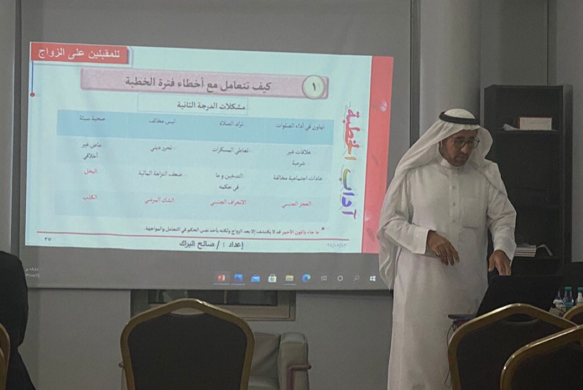 واقام مركز سنا للارشاد الأسري التابع لجمعية البر الخيرية بسنابس محاضرة بعنوان «مرحلة الخطوبة أعظم بناء في الاسلام» والتي يقدمها المرشد الأسري والأخصائي النفسي صالح البراك