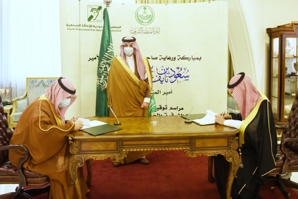 وبارك توقيع اتفاقية تعاون بين إمارة المنطقة الشرقية، والجمعية السعودية للإعاقة السمعية، ووقع عن الإمارة وكيل الإمارة د. خالد البتال، وعن الجمعية علي الحلافي.