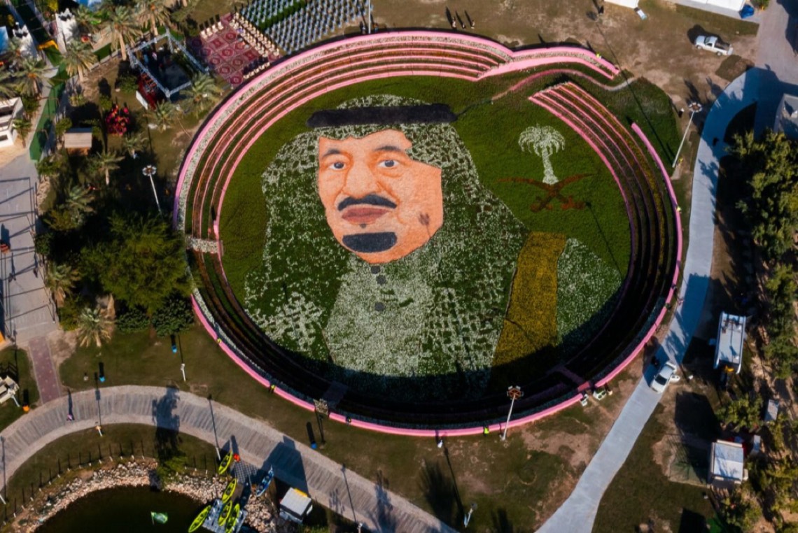 بمليون زهرة.. تشكيل أكبر صورة لخادم الحرمين الشريفين في كرنفال الأحساء