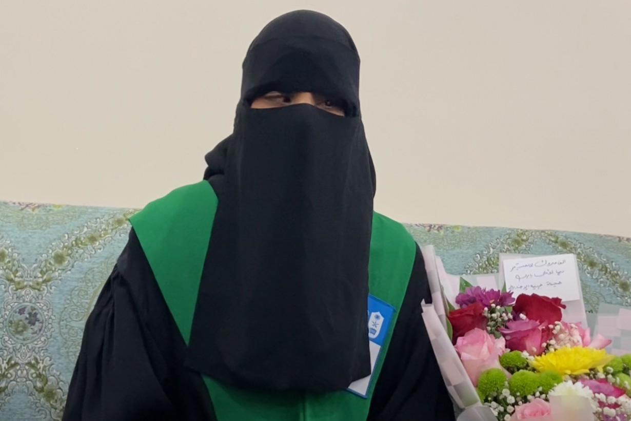 وقالت وهي بجانب أختها التي تعتبرها بمثابة صديقتها: بعد التجربة الناجحة في مرحلة البكالوريوس والتي لاقت ثناء الإدارة وإعجابهم، لم أجد صعوبة في القبول في مرحلة الماجستير، فكنت استخدم جهاز ”قارئ الشاشة“ للبرامج الإلكترونية ووظفته في الدراسة.