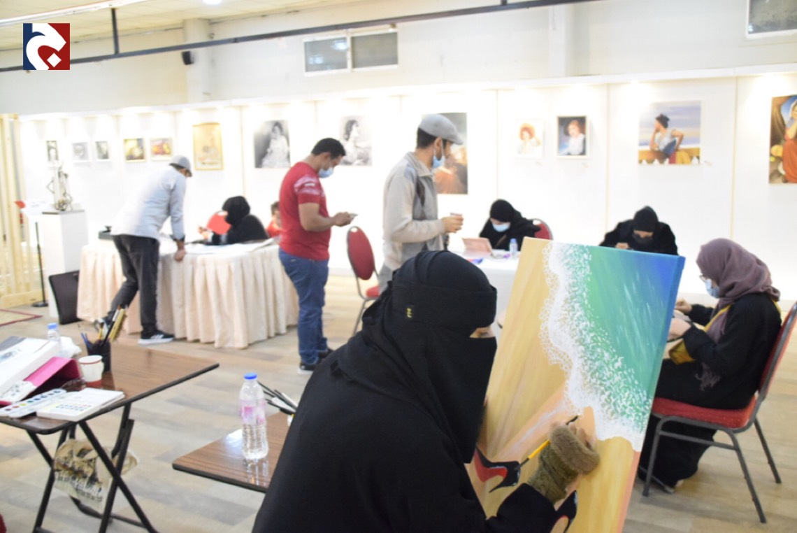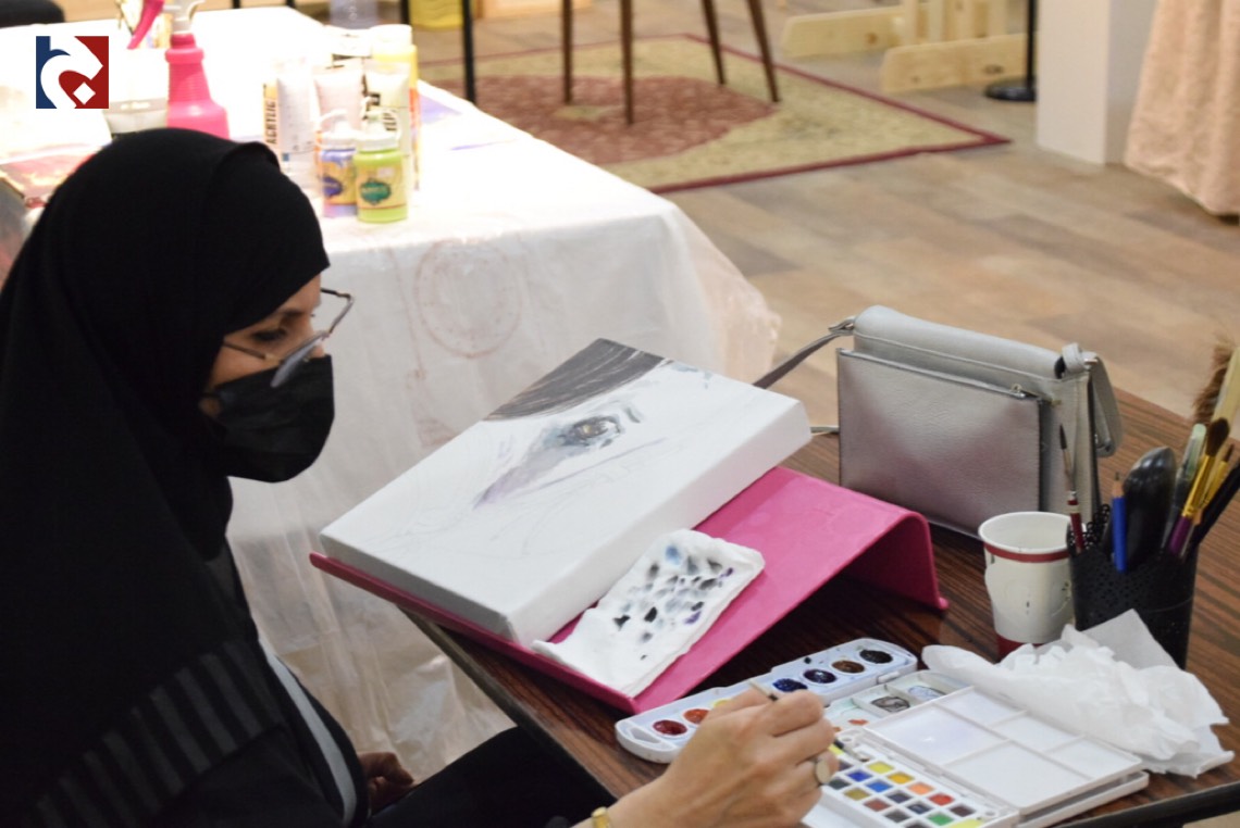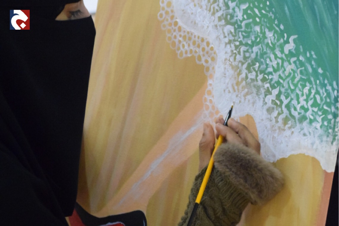 وصورت الفنانة زهرة الأمير الحياة اليومية في لوحاتها الواقعية بصحبة مجموعة من طالباتها.