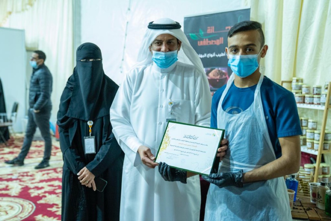 كرم مدير مركز التنمية الاجتماعية بمحافظة القطيف أحمد القباع ومساعدته فاطمة اليوسف 14 أسرة منتجة تنوعت منتجاتهم المرتبطة مباشرة بالزراعة أو تُصنف ضمن المخرجات للموارد الزراعية والعضوية.