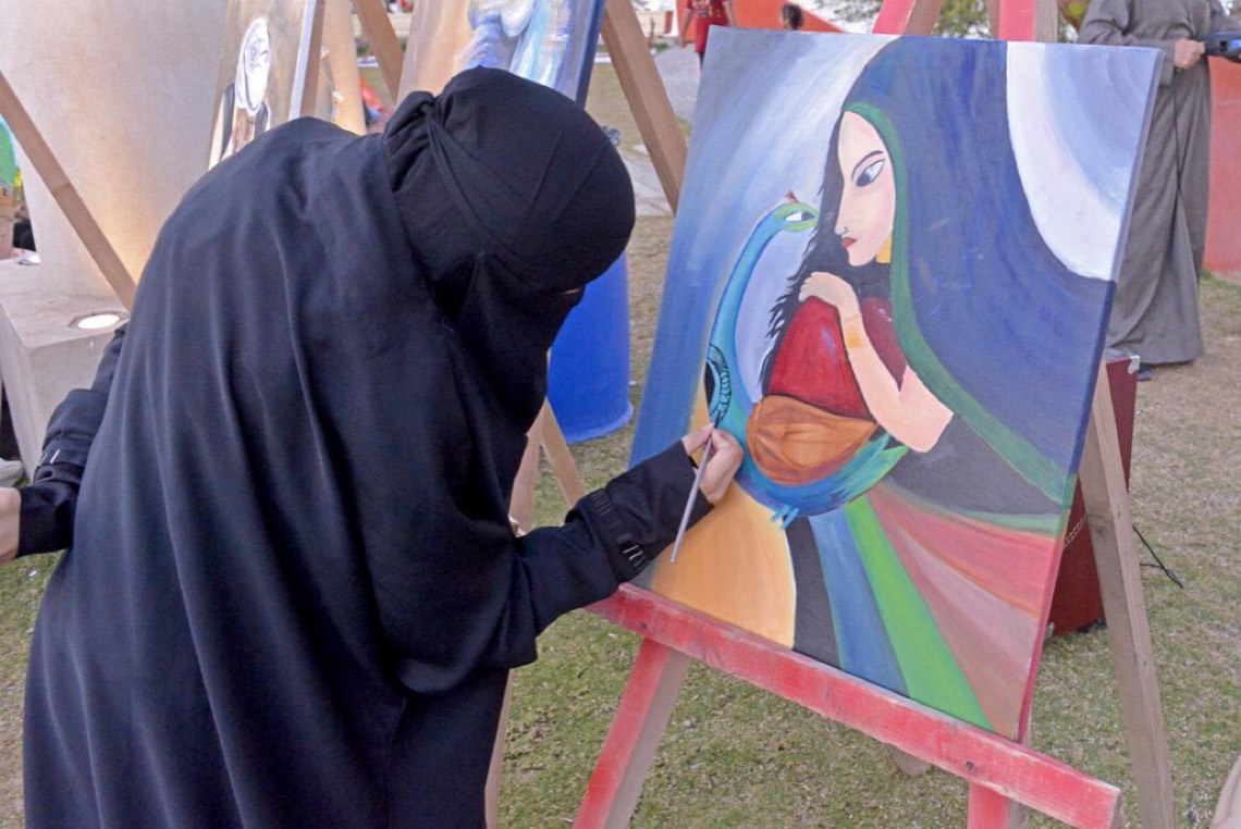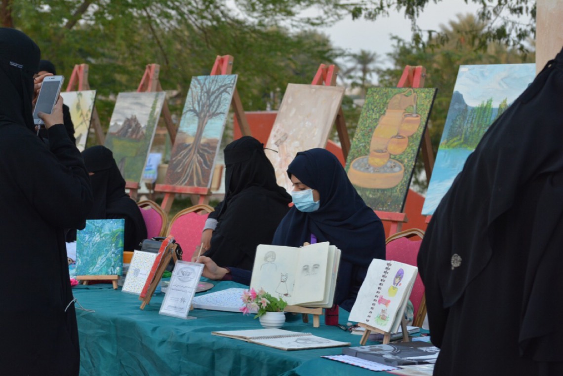 وشمل المهرجان على عدة أركان متنوعة وجاذبة لكل فئات المجتمع منها المعرض الفني التشكيلي والذي ضم أكثر من 70 لوحة فنية منها للعرض البيع.