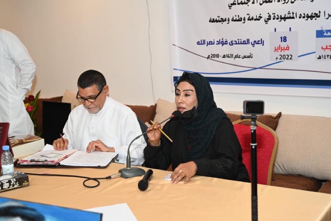 ثم تعاقب على الحديث عن المحتفى به كل من الفنانة التشكيلية حميدة السنان، ونجاح العمران وخضراء المبارك، وكل منهن أشادت بخدمات السيد الخباز في مجال ما من المجالات التي كان مشرفا عليها ومتابعا لها.