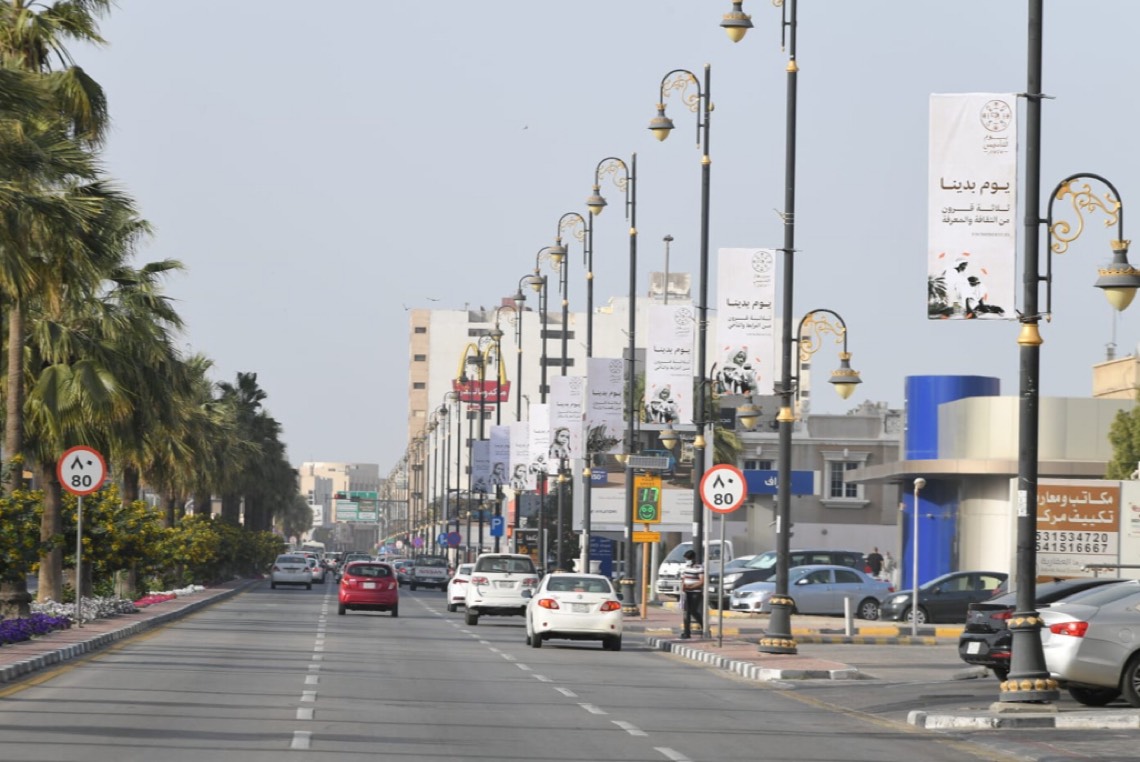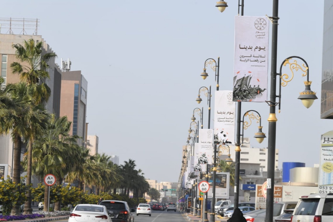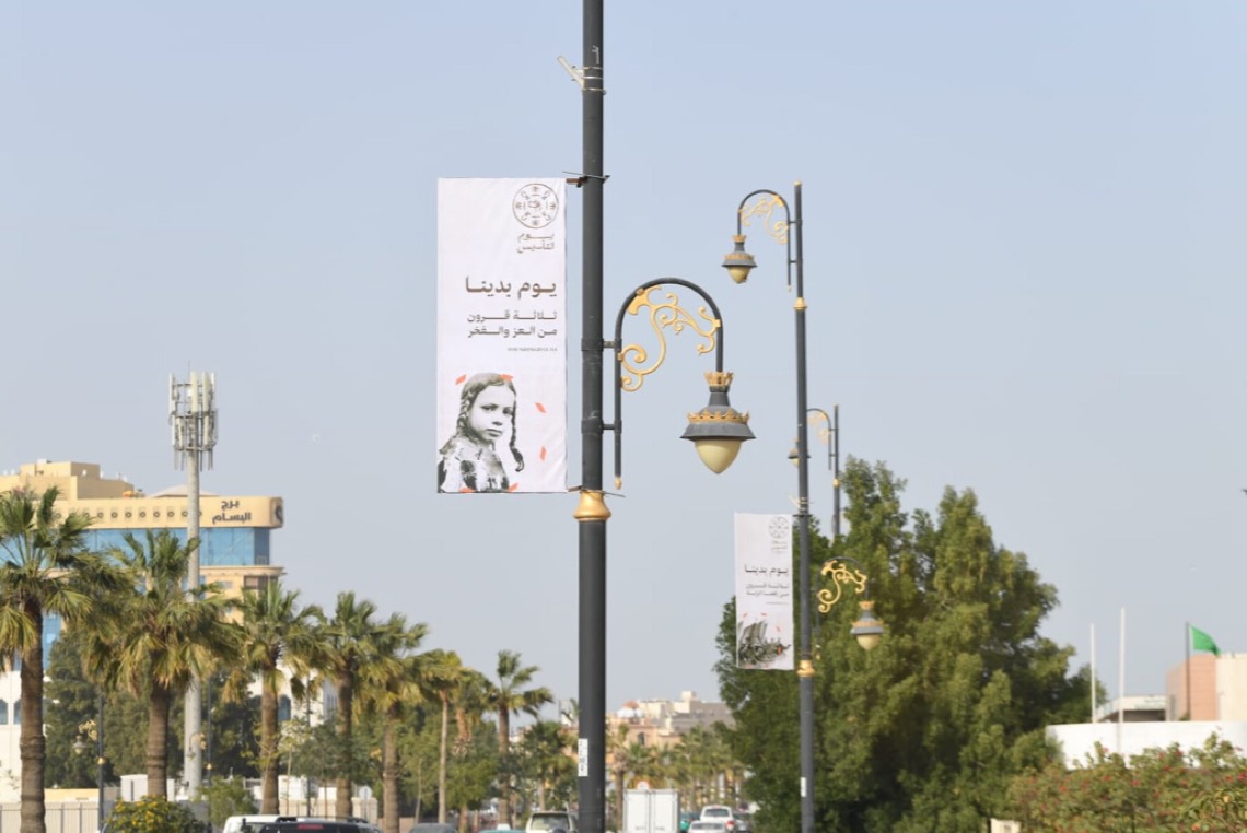 فيما تم تزيين ثلاثة مباني رئيسية بالحاضرة بالإنارة على شكل شعار يوم التأسيس وشعار الرؤية 2030 وصور المؤسس الملك عبد العزيز، وصور الملك سلمان بن عبد العزيز، وولي عهده الأمير محمد بن سلمان بن عبد العزيز، إضافة إلى تركيب 130 علم تحمل بطياتها قصة التأسيس عند تقاطعات الطرق.