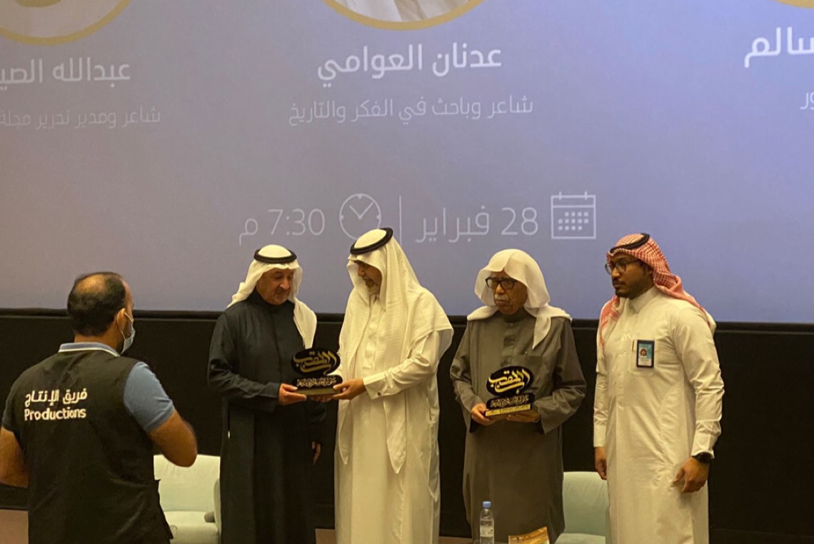 وفي ختام الأمسية كرم رئيس ملتقى ابن المقرب الأدبي أحمد اللويم، ومسؤول الأنشطة بمركز إثراء معاذ صقر، الشاعرين الكبيرين.