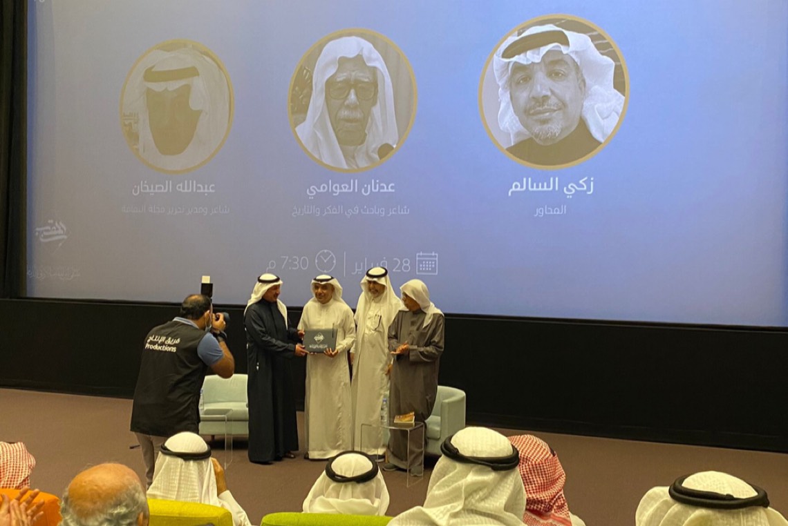 استضافت الأمسية الشاعرين الكبيرين الشاعر السيد عدنان العوامي والشاعر عبدالله الصيخان، بإدارة زكي السالم، وسط حضور جماهيري نخبوي كبير.