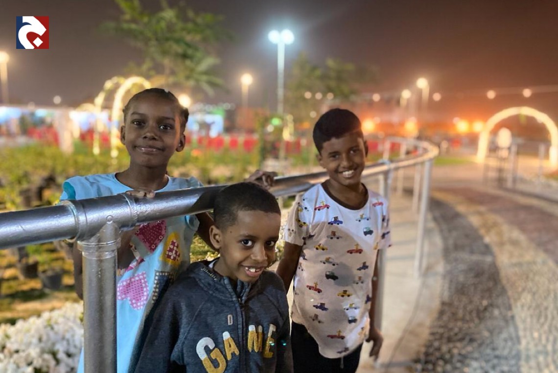 بوجوه مشرقة تعلوها الابتسامة، وقف أطفال مهرجان الزهور في موسمه الثاني أمام عدسة الكاميرا، معبرين عن سعادتهم بالأجواء الممتعة.