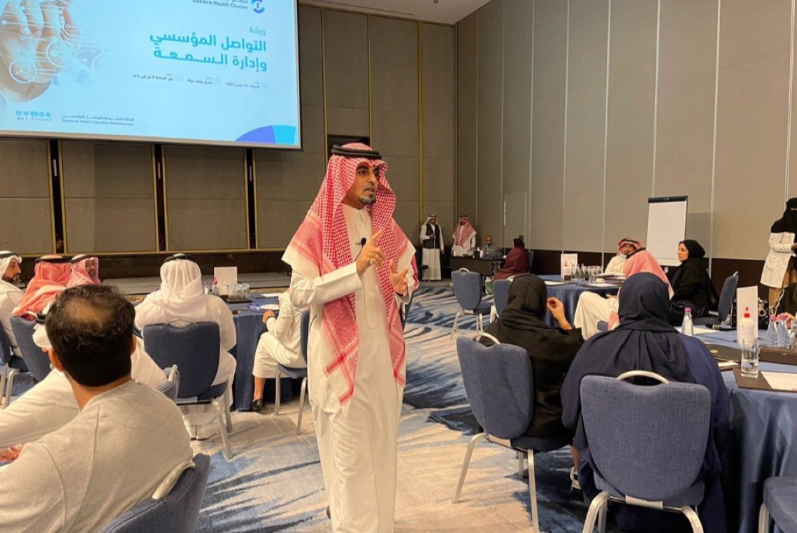 من ناحيته، بيّن مدير العلاقات العامة بتجمع الشرقية الصحي أسد آل قريع، أن ورش العمل التي انطلقت بعنوان ”التواصل المؤسسي وإدارة السمعة“ شملت 3 جلسات، ناقشت الأولى محور ”الصورة الذهنية وإدارة السمعة“ فيما ناقشت الثانية محور ”إدارة الأزمات“، بينما تناقش الثالثة محور ”الاحتراق الوظيفي، ودور التواصل الداخلي في زيادة الولاء“، وشهدت تفاعلاً مثمراً من المشاركين من منسوبي التواصل المؤسسي.
