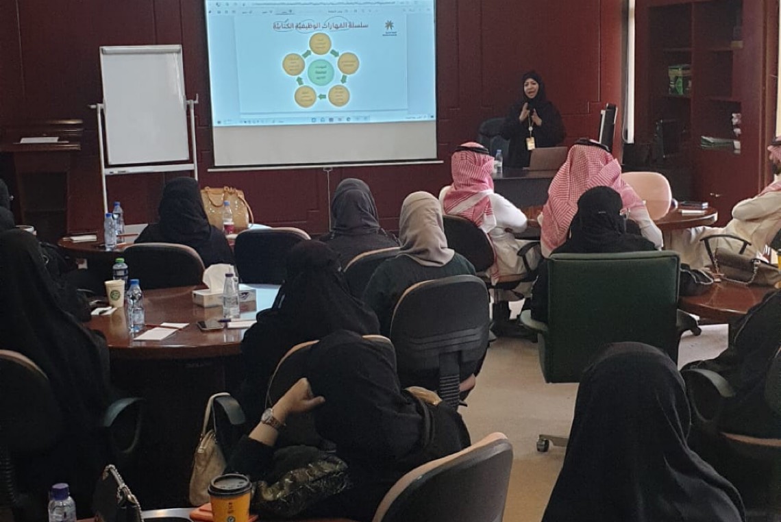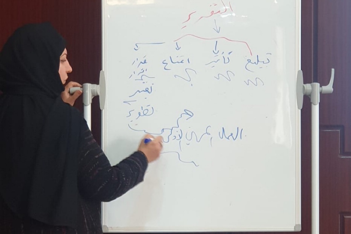 وتطرقت إلى أنواع الخطابات الوظيفية في بيئة العمل الإداري وأجزاء الخطاب الرسمي وقواعد الكتابة الصحيحة، وكان هناك تدريبات عملية في نهاية كل يوم.