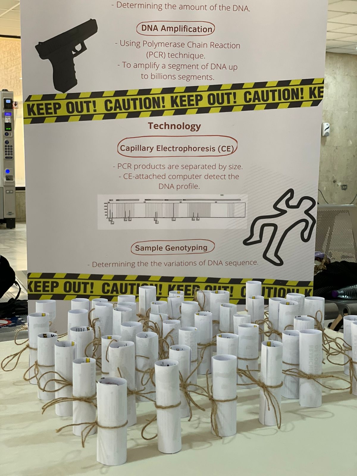 وشملت المبادرة على عدة فعاليات مصاحبة كإطلاق مسابقة مخصصة لطالبات كلية العلوم ومعرض مصاحب للمبادرة والذي احتوى على عدد من الاركان والملصقات العلمية في الجينوم والطفرات والأمراض الوراثية وآلية التعبير الجيني وتمثيل الطالبات لمسرح الجريمة وكيفية التعامل معه وطريقة رفع العينات الحيوية وتوضيح لأهم الأبحاث والدراسات المرتبطة في استخدام تقنيات DNA للكشف وتحديد الجاني وفك غموض العديد من القضايا المعقدة بزيارة عدد قرابة 200 شخص من منسوبات الكلية وموهوبات مدارس المنطقة الشرقية.