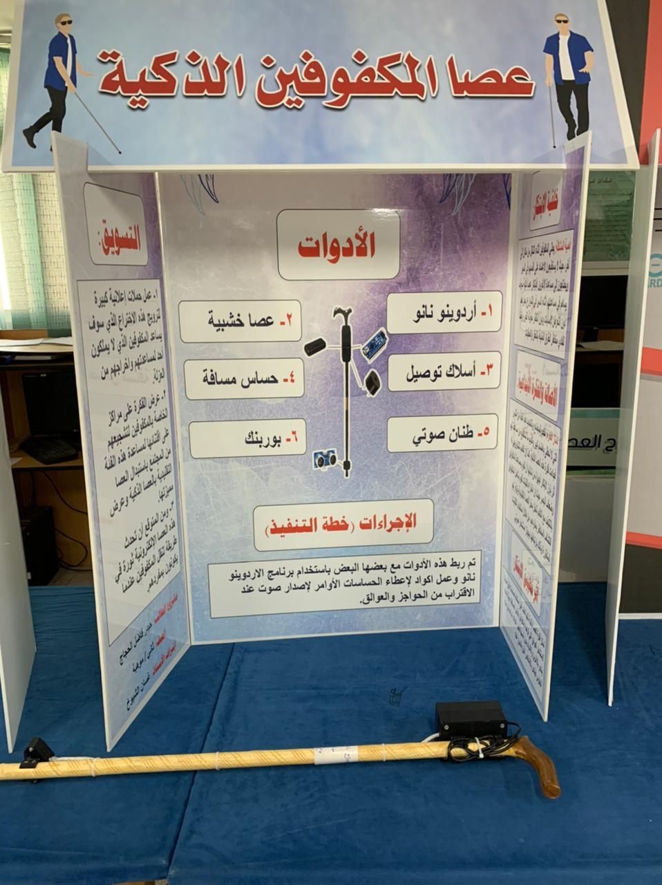 وقال الحجاج الذي يطمح لأن يكون طبيباً مرموقا إن مشروعه عبارة عن عصا ذكية تساعد المكفوف على تفادي العوائق اثناء السير بدون مساعدة الآخرين.