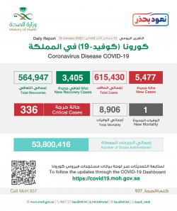 «الصحة»: تسجيل 5477 إصابة جديدة ب «كورونا».. ”54“ في القطيف و”14“ بصفوى