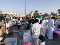 «رسل السلام» يوزعون المياه الباردة على عمال النظافة في تاروت